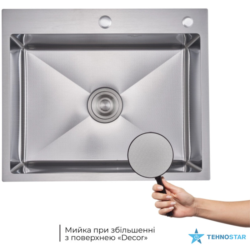 Велика інтегрована мийка з нержавіючої сталі з декоративною поверхнею Honeycomb. В комплекті з дозатором і кошиком Lidz K01G — усе необхідне для комфортного використання.
