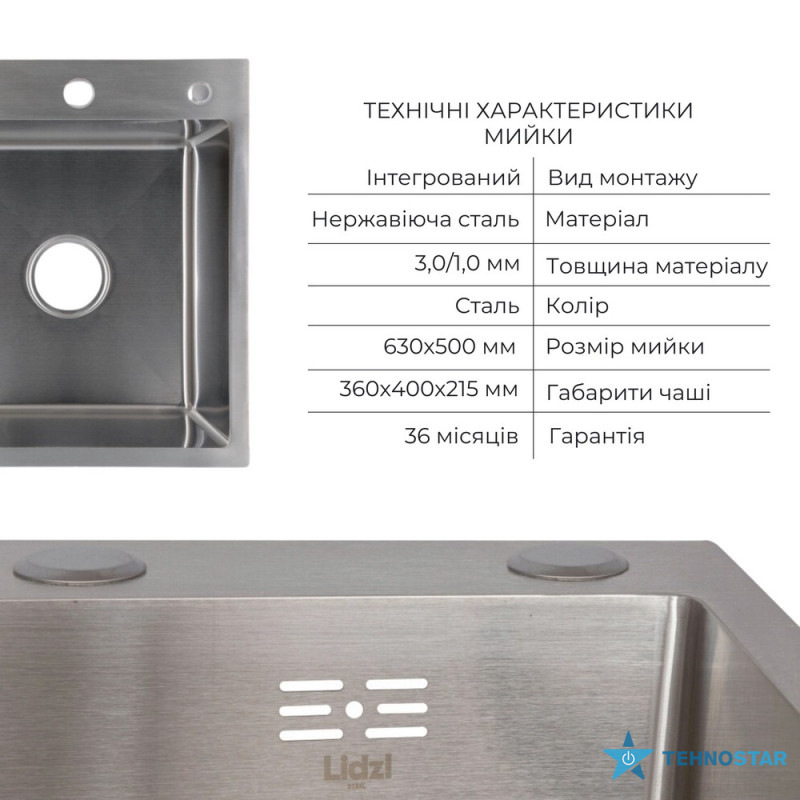 Комплект Lidz Handmade H6350L (Brushed) створений для шанувальників функціональності: інтегрована мийка з лівим крилом, дозатор для мийного засобу та кошик Lidz K01G - все, що потрібно для комфорту.