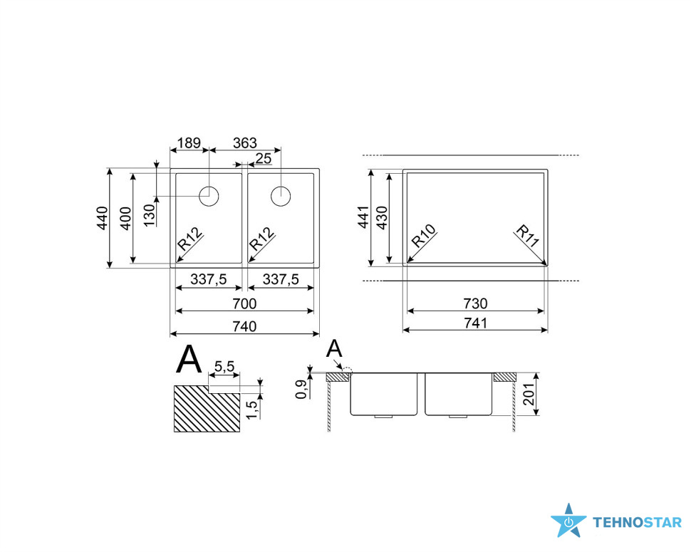 Smeg VR12S3434 — це практична та стильна подвійна мийка з нержавної сталі