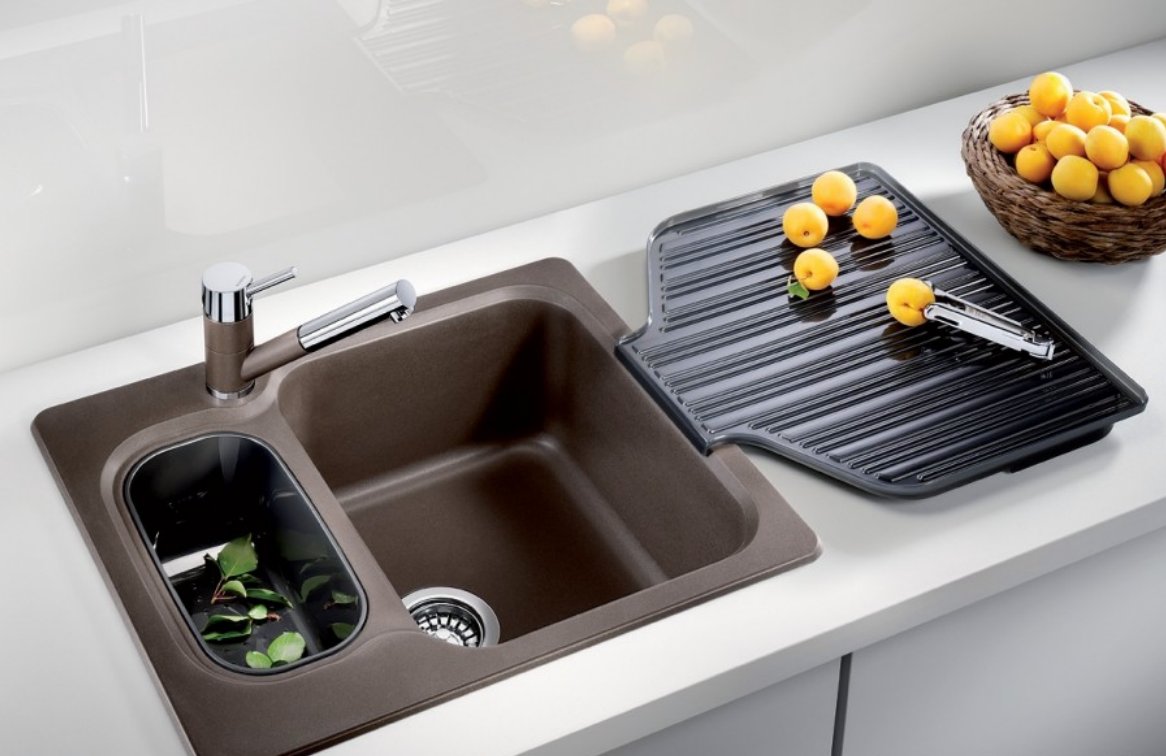Среди многообразия кухонных раковин хорошо зарекомендовали себя мойки, выполненные из искусственного камня. Этот материал состоит из каменной крошки (мрамор, гранит, базальт или кварц), полимерной смолы для склеивания натуральной крошки, а также красителей, имитирующих оттенки натурального камня. Кухонные мойки, изготовленные из таких материалов, не только выглядят безупречно, но и имеют хороший запас прочности. Наиболее практичными и долговечными считаются гранитные раковины.