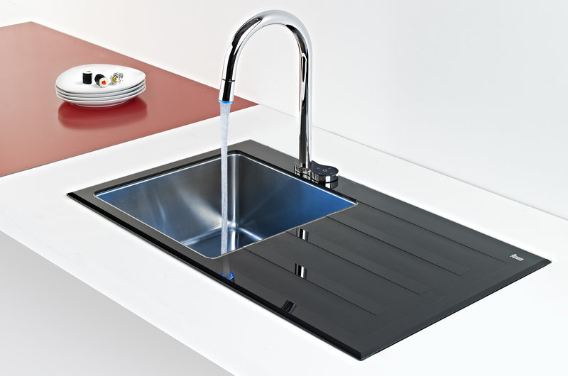 • Комбинированные мойки. В ассортименте Teka есть уникальные модели комбинированных моек. Их чаша изготовлена из нержавеющей стали, а крыло – из закаленного тонированного стекла. Стеклянная поверхность устойчива к образованию царапин и ударным воздействиям. Но все же, при падении очень тяжелой сковородки или кастрюли, возможно появление трещин.