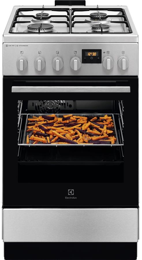 Electrolux LKK560228X — це сучасна комбінована плита, яка ідеально поєднує класичну газову варильну поверхню та багатофункціональну електричну духовку з конвекцією й паровою підтримкою. Така конфігурація забезпечує максимальну гнучкість у приготуванні — від смаження до запікання з парою.