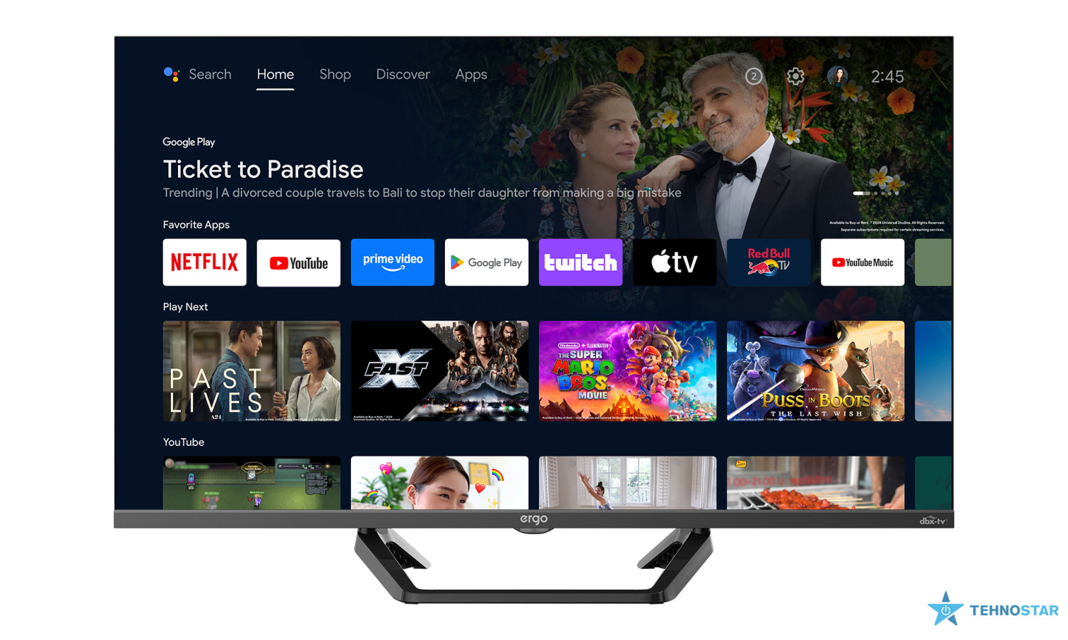 Телевізор працює на базі Android TV 11.0, що відкриває доступ до тисяч додатків, включаючи YouTube, Netflix, Megogo, Spotify та інші. Вбудований магазин додатків дозволяє розширити функціонал телевізора, а підтримка голосового керування - зробити взаємодію ще зручнішою.