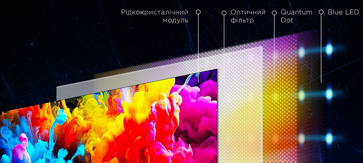 Спеціальний шар з квантових точок трансформує звичайне світло в майже безкінечну кількість відтінків і градацій, створюючи небачену раніше глибину й насиченість кольорової палітри на екрані телевізора.