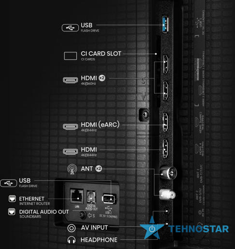 Вбудований у телевізор сабвуфер забезпечує глибокі низькі частоти. Відчуйте гулке звучання в кожній сцені — від ледь уловимих музичних ритмів до гучних екшн-блокбастерів. Пориньте в новий вимір звуку.