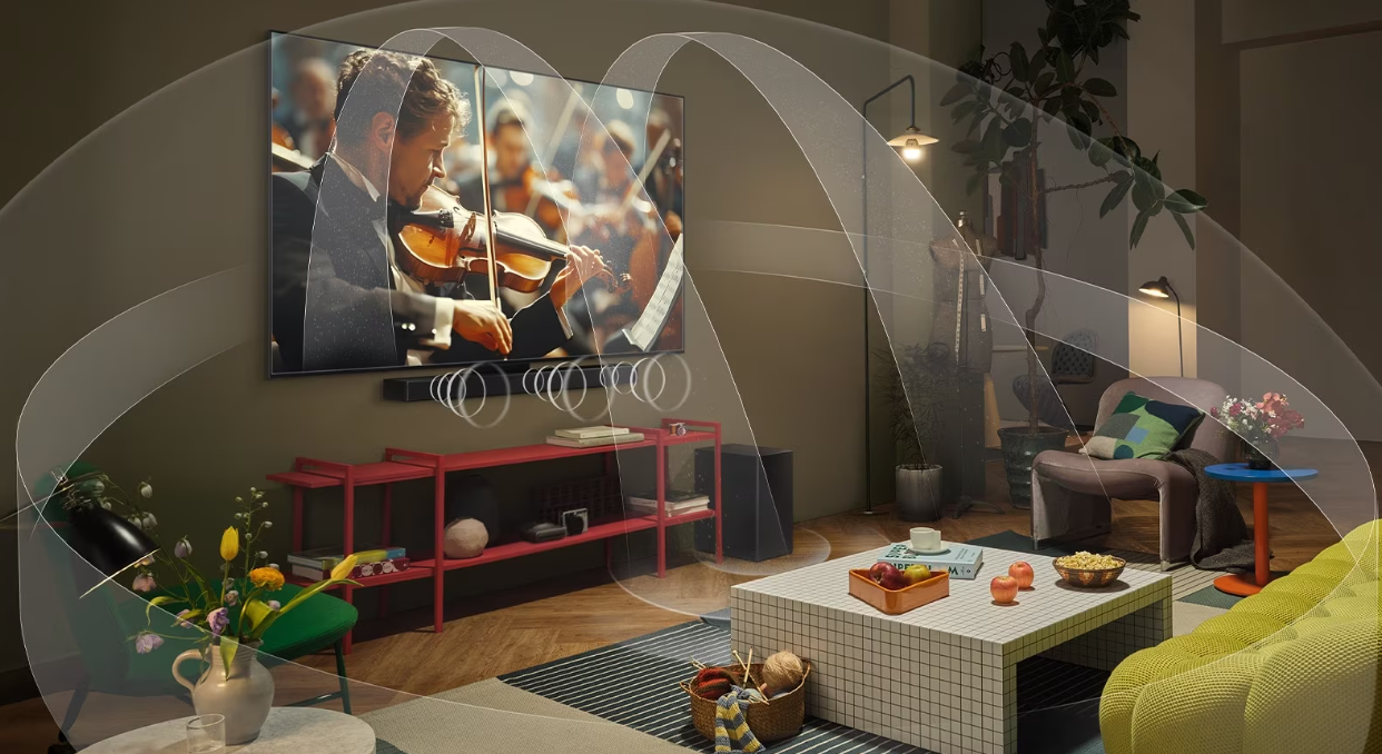 Телевізор LG OLED та Саундбар LG — ідеальне поєднання, створене для гармонійної роботи й занурення в об’ємне багатоканальне звучання.