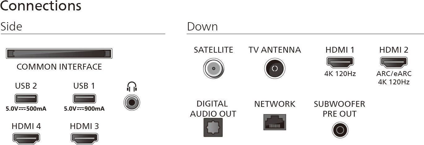Підключення: 4×HDMI 2.1 (з eARC), 2×USB, Wi-Fi 802.11ac (2x2), Bluetooth 5.2, Ethernet, Apple AirPlay