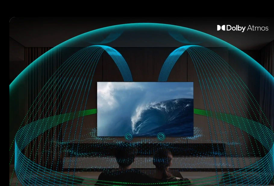 Відчуйте пульсацію подій в кожній сцені. Динаміки верхніх каналів Samsung працюють з технологією Dolby Atmos, створюючи багатовимірний купол звуку, що огортає вас справді насиченим звучанням.