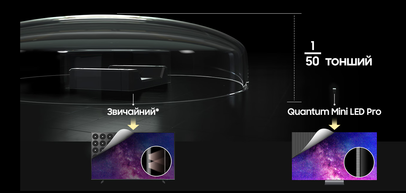 Тонкий форм-фактор комфортно поєднується з навколишнім середовищем, забезпечуючи захоплюючу естетику та надзвичайні враження від перегляду.
