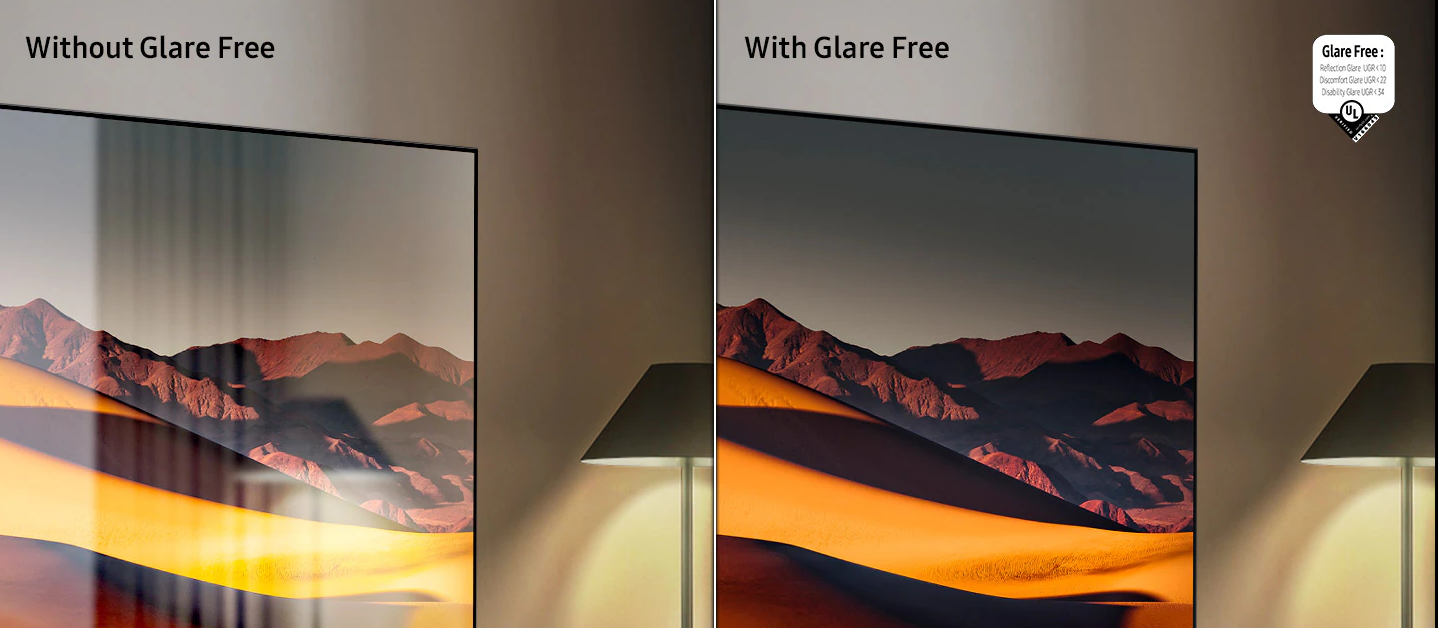 Технологія зменшення відблисків мінімізує відблиски від яскравого середовища, наприклад, освітлення в приміщенні. Тепер ви можете бачити екран чітко, без відблисків, що відвертають увагу та заважають перегляду контенту.