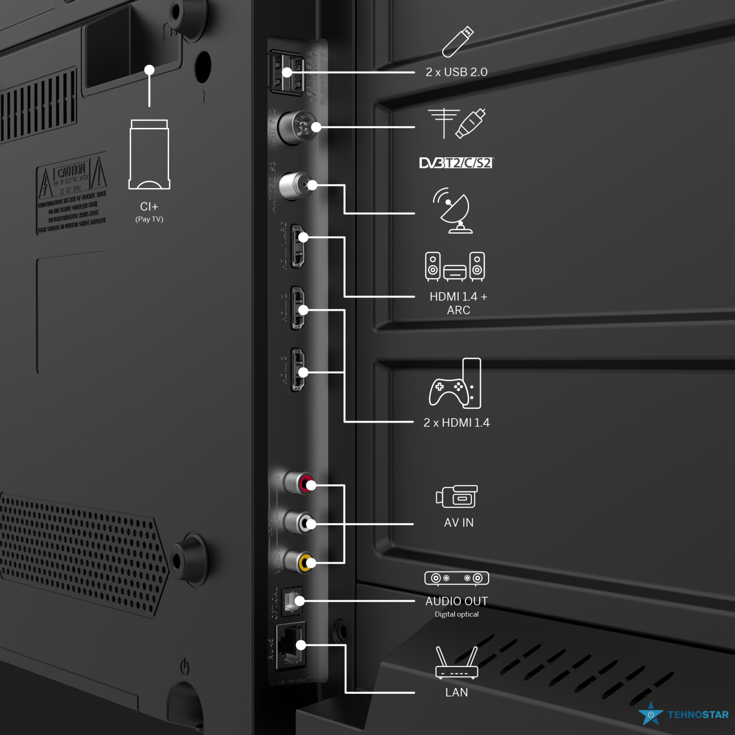 Завдяки вбудованому потрійному тюнеру, телевізор здатен приймати сигнал через супутникову, ефірну або кабельну антену, що дозволяє переглядати всі можливі каналами без необхідності в додатковому обладнанні.