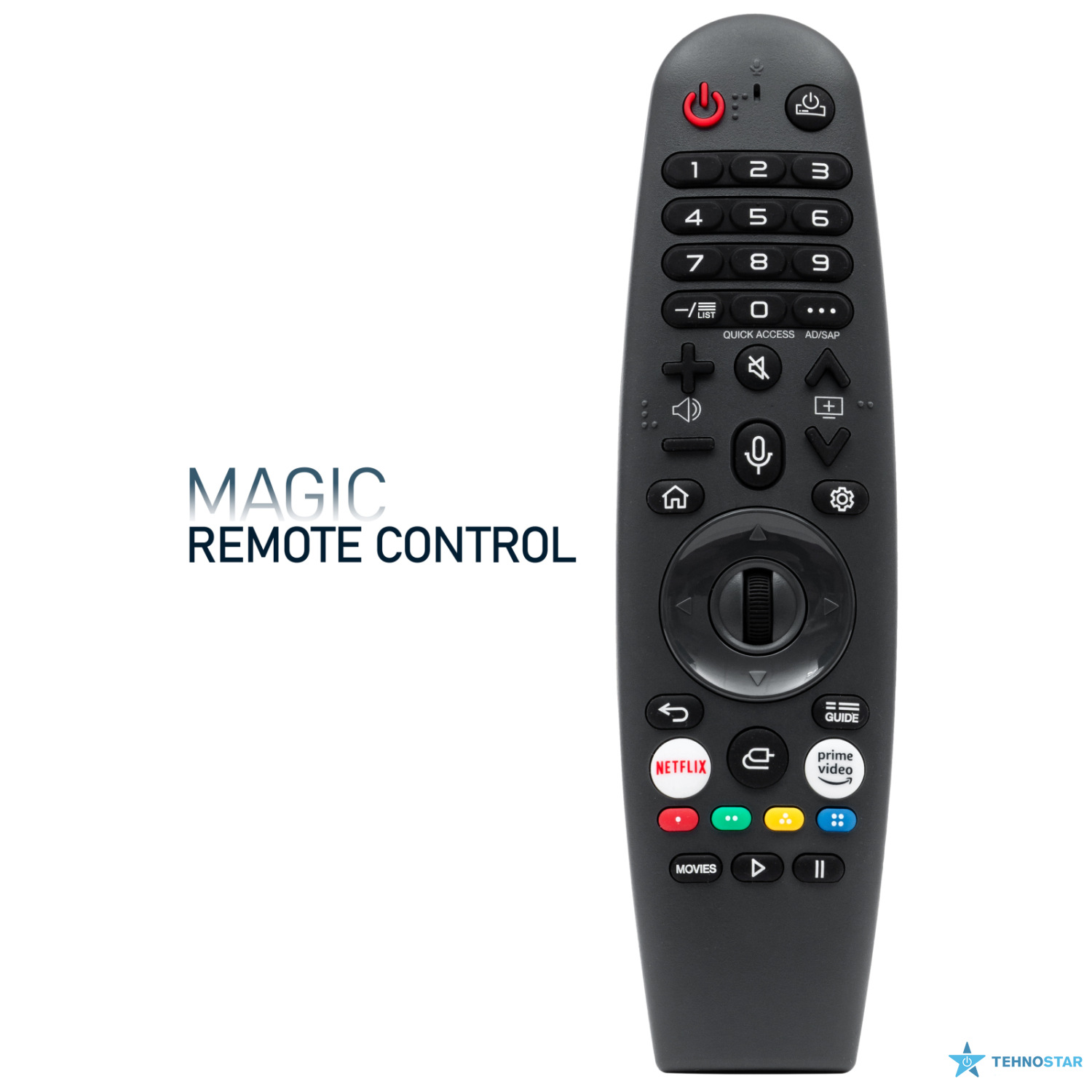 Пульт дистанційного керування Magic Remote у новому дизайні ще більше схожий на чарівну паличку. Завдяки ергономічній конструкції його зручно тримати в руці, а система вибору та прокручування дає змогу пришвидшити пошук. Вбудовані функції штучного інтелекту спрощують доступ до додатків, а гарячі кнопки для основних постачальників контенту дають змогу здійснювати швидкий доступ до всіх улюблених каналів.
