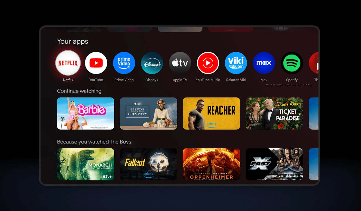 Google TV подбає про твій відпочинок. Стрімінгові платформи, онлайн кінотеатри та відеосервіси забезпечують швидкий доступ до контенту на будь-який смак. Система запам'ятовує, який контент тобі подобається дивитися, та пропонує для перегляду передачі та фільми, які можуть тебе зацікавити. Чим більше дивишся, тим точніше система вгадує твої смаки. Завдяки персоналізованим профілям кожен користувач отримає індивідуальні рекомендації та зможе легко знайти, чим себе зайняти.