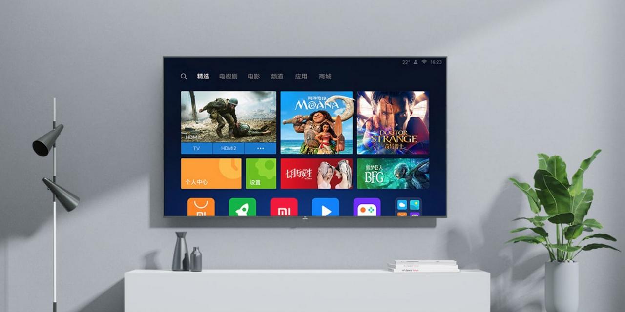 Дизайн телевізорів із великим екраном мінімалістичний. На передній панелі немає жодних кнопок, лампочок, роз'ємів, які б відволікали погляд від екрану. Обрамлення екрану – вузький обідок чорного чи сірого кольору. Товщина телевізора (залежно від моделі) становить від 3,4 до 9,3 см. Екран можна встановити на тумбу-підставку або за допомогою спеціальних кріплень повісити на стіну з мінімальним зазором. Відстань між стіною та задньою панеллю телевізора становитиме не більше 1 см.
