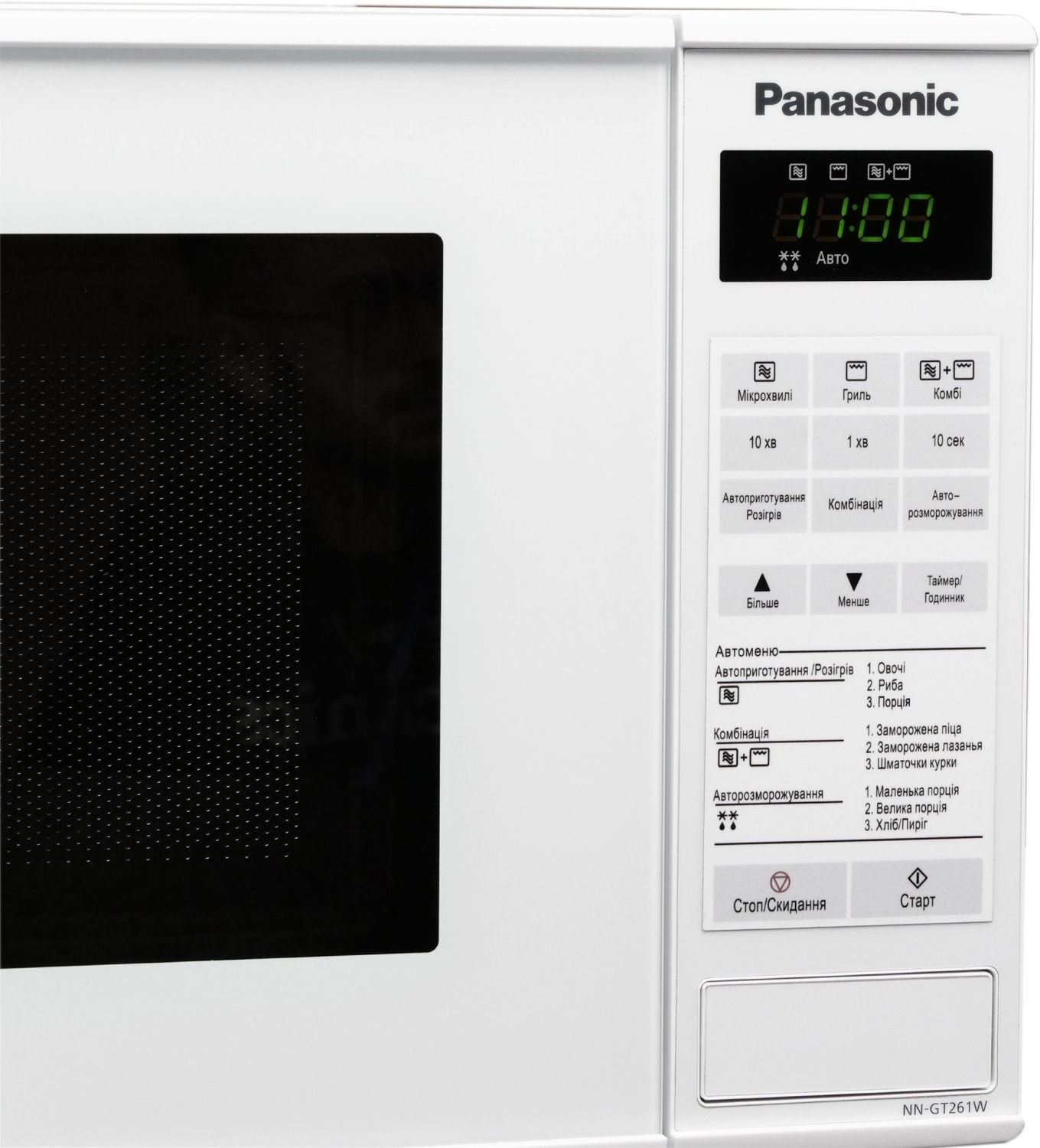У Panasonic NN-GT261WZUE передбачений гриль з споживаної потужністю в 1000 Вт, що дозволить легко зробити рум'яну скоринку. Додаткова функція автоматичного розморожування дозволить швидше приступити до приготування м'ясних страв.