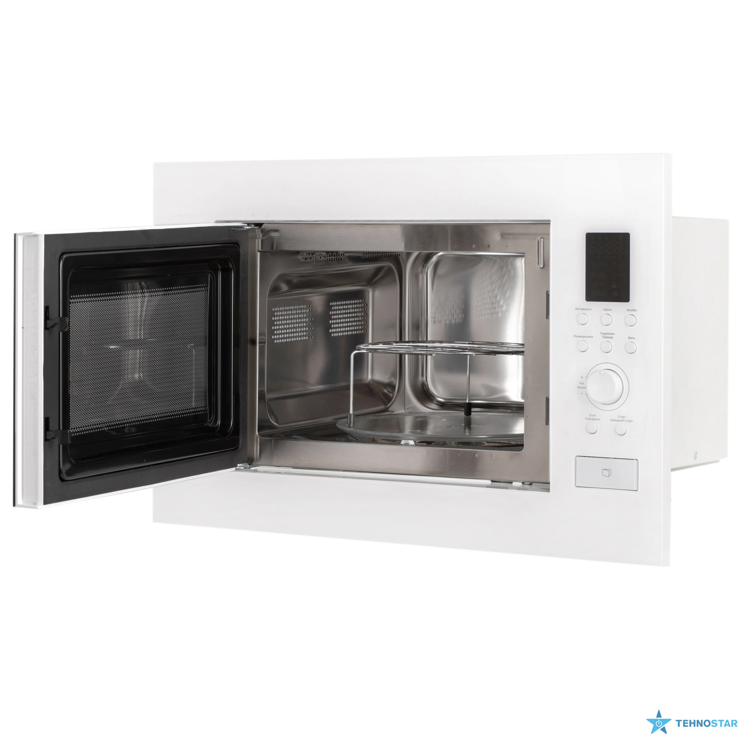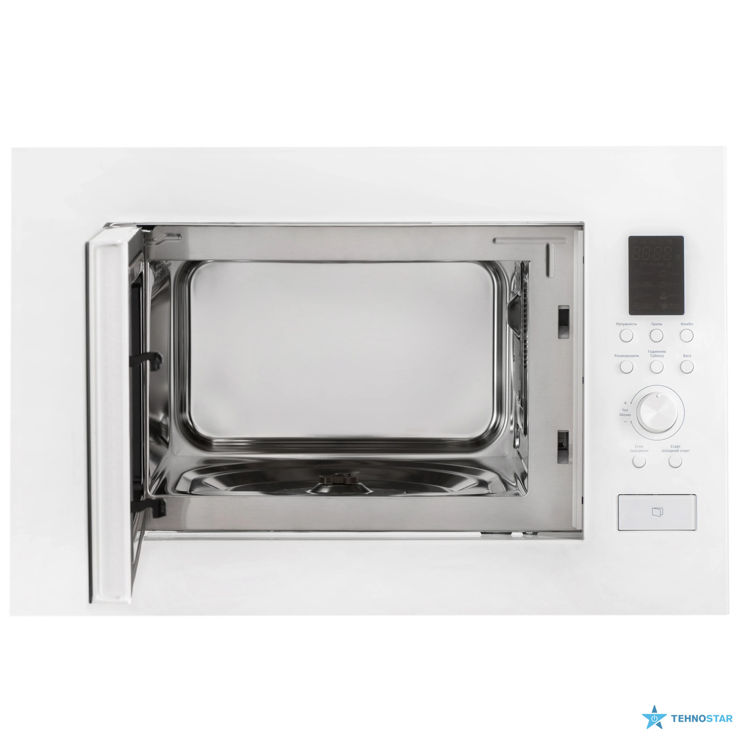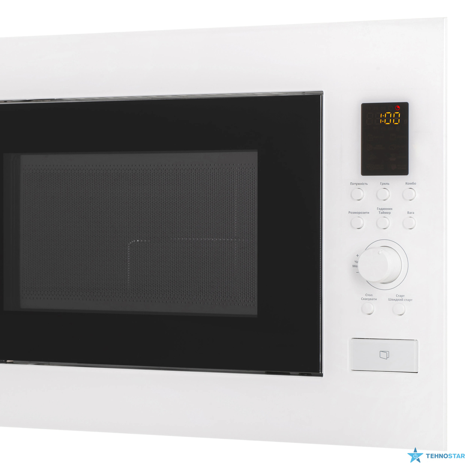 Eleyus GMWB 25EGT WH — це вбудована мікрохвильова піч білого кольору, яка поєднує в собі стильний дизайн, функціональність та зручність у використанні. Її класичний білий фасад з нержавіючою сталлю гармонійно впишеться в будь-який інтер'єр кухні.