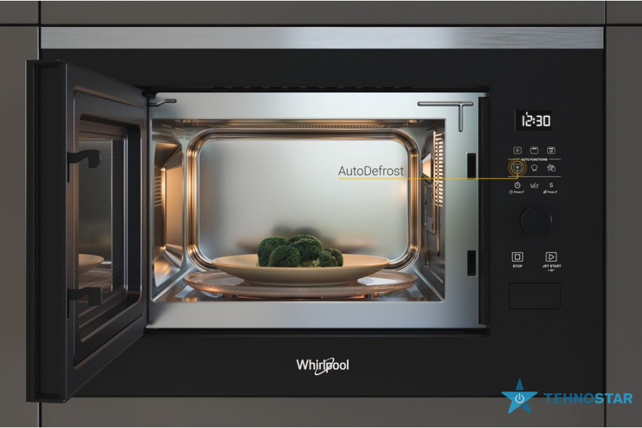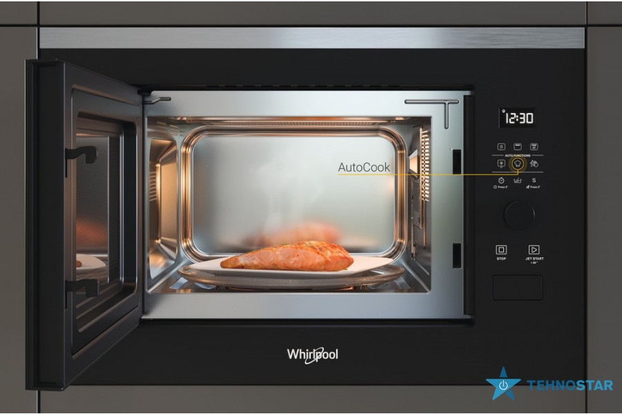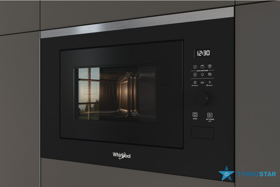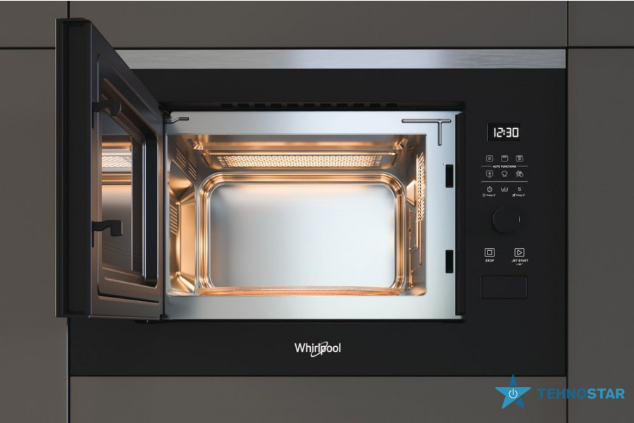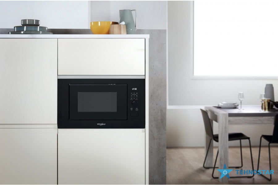 Whirlpool WMF 250 G — це стильна та функціональна вбудована мікрохвильова піч, яка поєднує в собі сучасний дизайн та передові технології для зручного приготування їжі. Її чорний фасад з нержавіючою сталлю гармонійно впишеться в будь-який інтер'єр кухні.