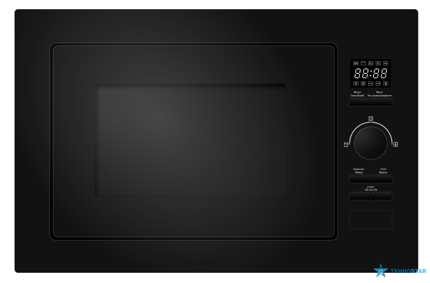 Габарити, см: висота: 38.8, ширина: 59.5, глибина: 40.1, Внутрішній об'єм, л.: 25, Внутрішнє покриття: нерж. сталь, Конвекційний нагрів: немає, Потужність мікрохвиль, Вт.: 900, Потужність грилю, Вт.: 1000, Колір: нерж. сталь, Пароварка: нет, Гриль: есть, Тип: гриль