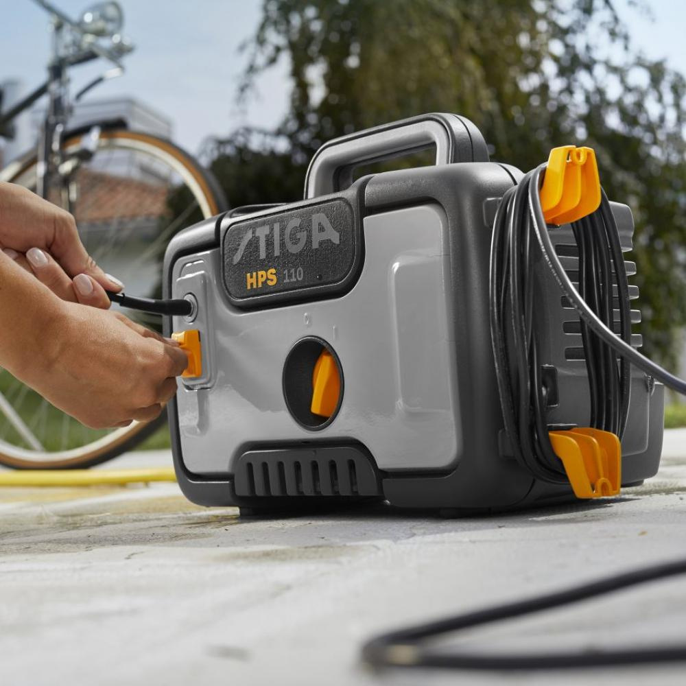 STIGA HPS110 — компактна мінімийка високого тиску для щоденного побутового очищення. Поєднання помірної потужності, продуктивності та невеликої ваги робить модель зручною для регулярного догляду за територією та предметами навколо будинку.