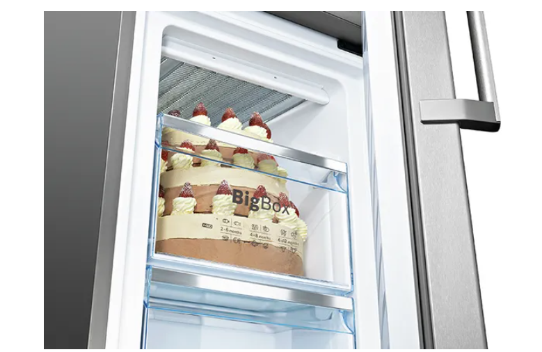 У морозильній камері, крім стандартних контейнерів, Ви знайдете просторий контейнер BigBox висотою 29 см, в який без зусиль помістяться "великогабаритні" продукти. Наприклад, індичка до 8 кг.