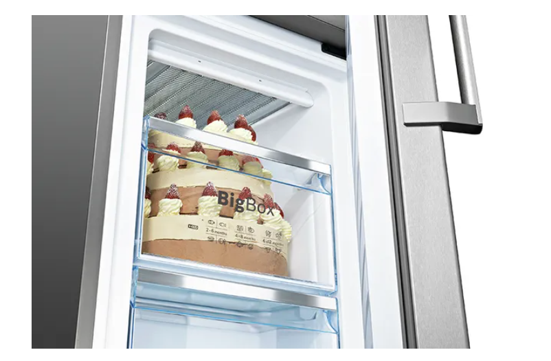 У морозильній камері, крім стандартних контейнерів, Ви знайдете просторий контейнер BigBox висотою 29 см, в який без зусиль помістяться "великогабаритні" продукти. Наприклад, індичка до 8 кг.