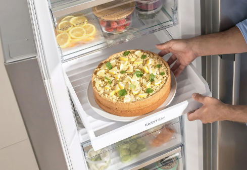 Завдяки спеціально розробленій шухляді у вигляді лотка у відсіку морозильної камери чудово видно всі заморожені продукти. Навіть ті, які зберігаються в самому кінці, не залишаються непоміченими. Шухляда розташована у верхній частині морозильної камери. Її можна вийняти до самого кінця та дістати все, що там зберігається.