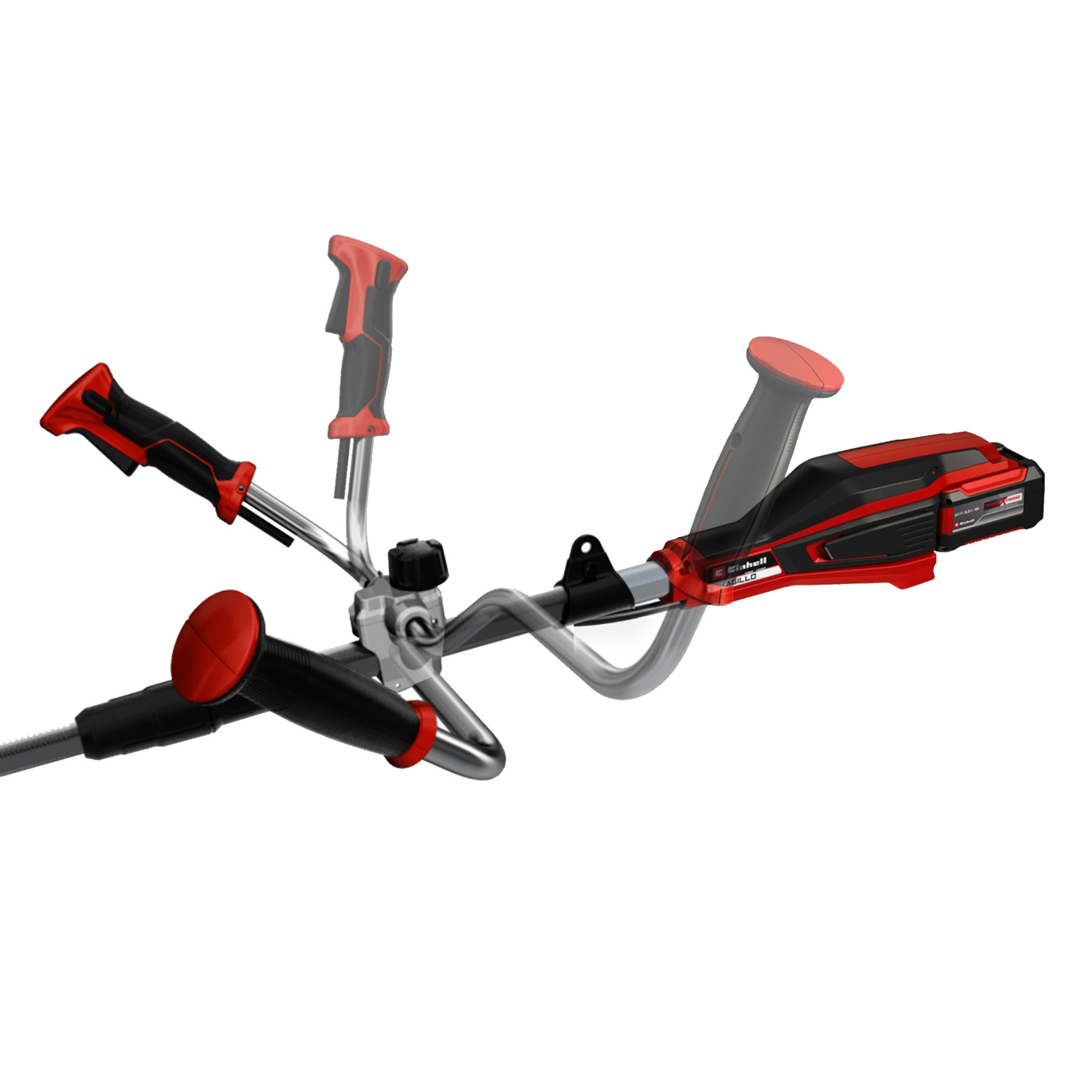 Конструкція з універсальною U-подібною рукояткою забезпечує стабільне ведення інструмента під час широких рухів. Регулювання положення рукоятки по висоті допомагає точніше налаштувати косу під робоче положення оператора. М’які накладки покращують хват і зменшують дискомфорт при тривалій роботі.