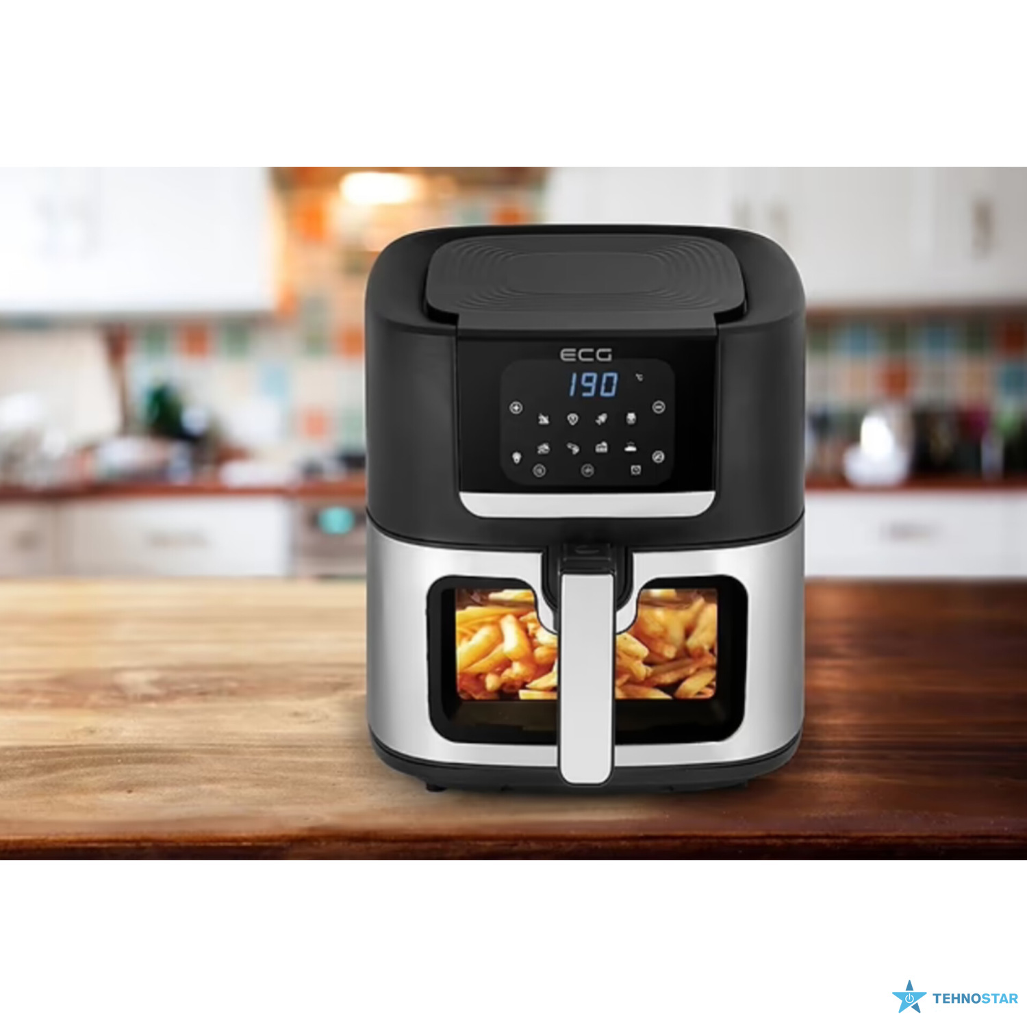 Мультипіч ECG AF 8000 Crusty XL - Більш корисне смаження у фритюрі з використанням гарячого повітря (з мінімальною кількістю олії або навіть без неї). Можливість смаження, запікання та випікання. Попередньо встановлені програми для приготування широкого асортименту страв без складного налаштування параметрів (тонка заморожена картопля фрі, креветки, свіжа риба, стейки яловичі, курячі гомілки, кекси/тістечка, запечені овочі, заморожена випічка).