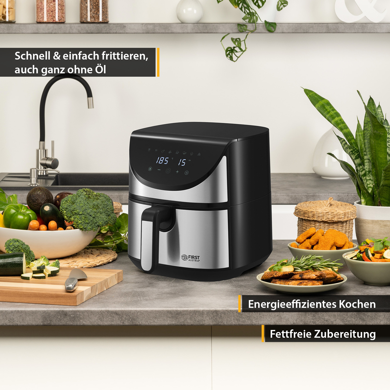 Смажити у фритюрі легко: картопля фрі, курячі нагетси та рибні палички для всіх! Відтепер на другу порцію нікому не доведеться довго чекати. Потужна фритюрниця з цифровим керуванням і 8 програмами надзвичайно швидко працює зі свіжими та замороженими продуктами без додавання зайвого жиру. Їжа вражає: золотисто-коричневого кольору. Експлуатація проста і безпечна завдяки високоякісним нагрівальним елементам з нержавіючої сталі, відстрочці старту (0-24 години), 60-хвилинному таймеру з автоматичним відключенням і термоізольованому пластиковому корпусу. Кошик для смаження з антипригарним покриттям легко чистити та можна мити в посудомийній машині.