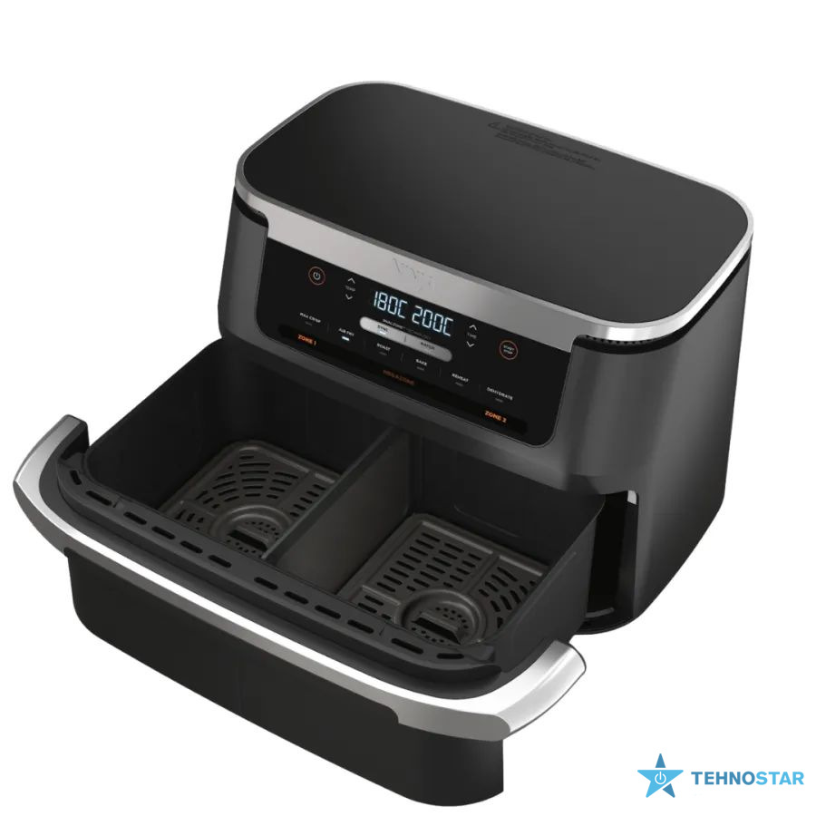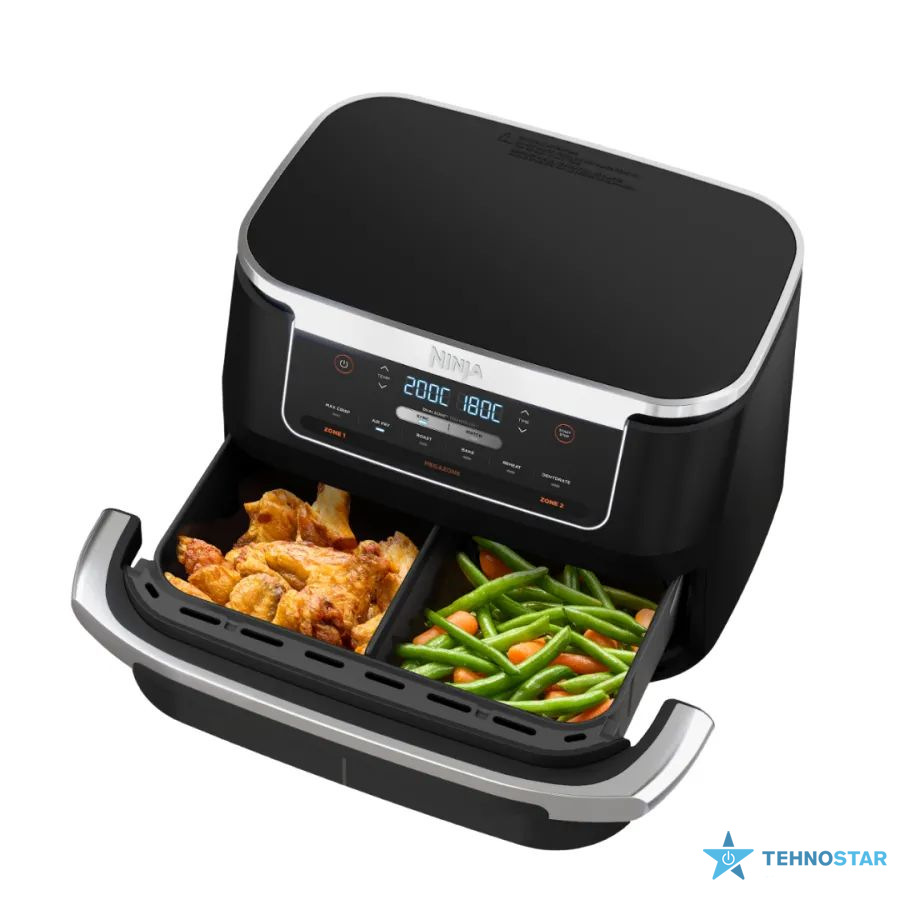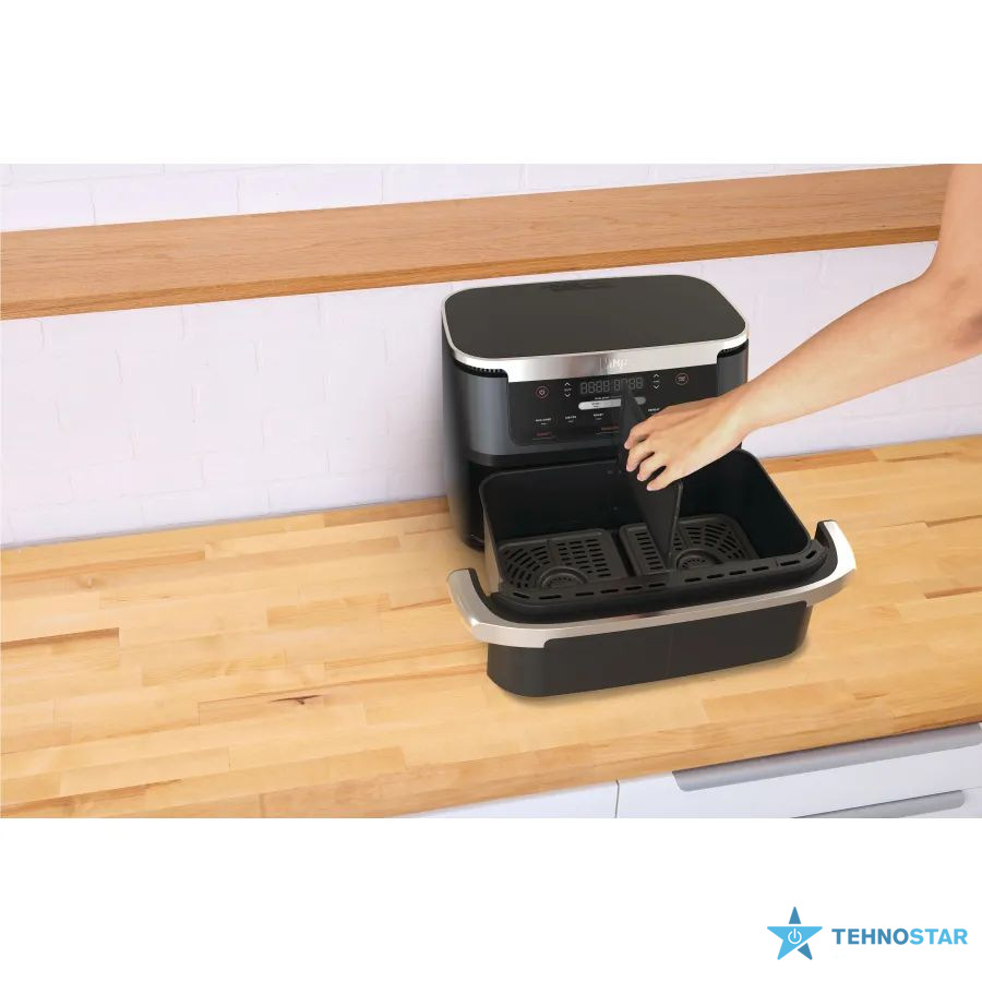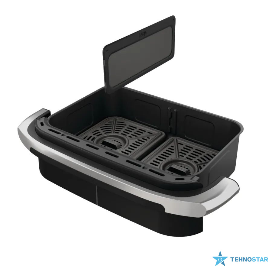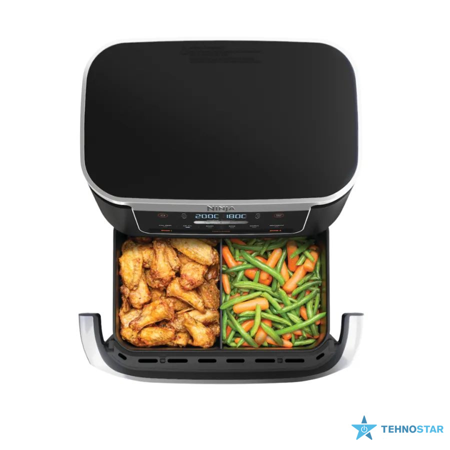 Коли двозонна мультипіч неактуальна, можна спробувати гнучку систему з антипригарним роздільником Ninja Foodi FlexDrawer 6,6 л AF550EU. Усередині кошика можна встановити спеціальну пластину, яка ділить ємність на дві незалежні зони. І тут починається магія: в одній половині ви готуєте соковиті курячі стегна з розмарином, а в іншій — овочі-гриль. Час приготування синхронізується автоматично, тож обидві страви доходять одночасно. Більше ніяких ситуацій, коли гарнір вже охолов, а основна страва ще не готова. Формат два в одному дозволяє накрити стіл без хаосу і зайвого посуду.