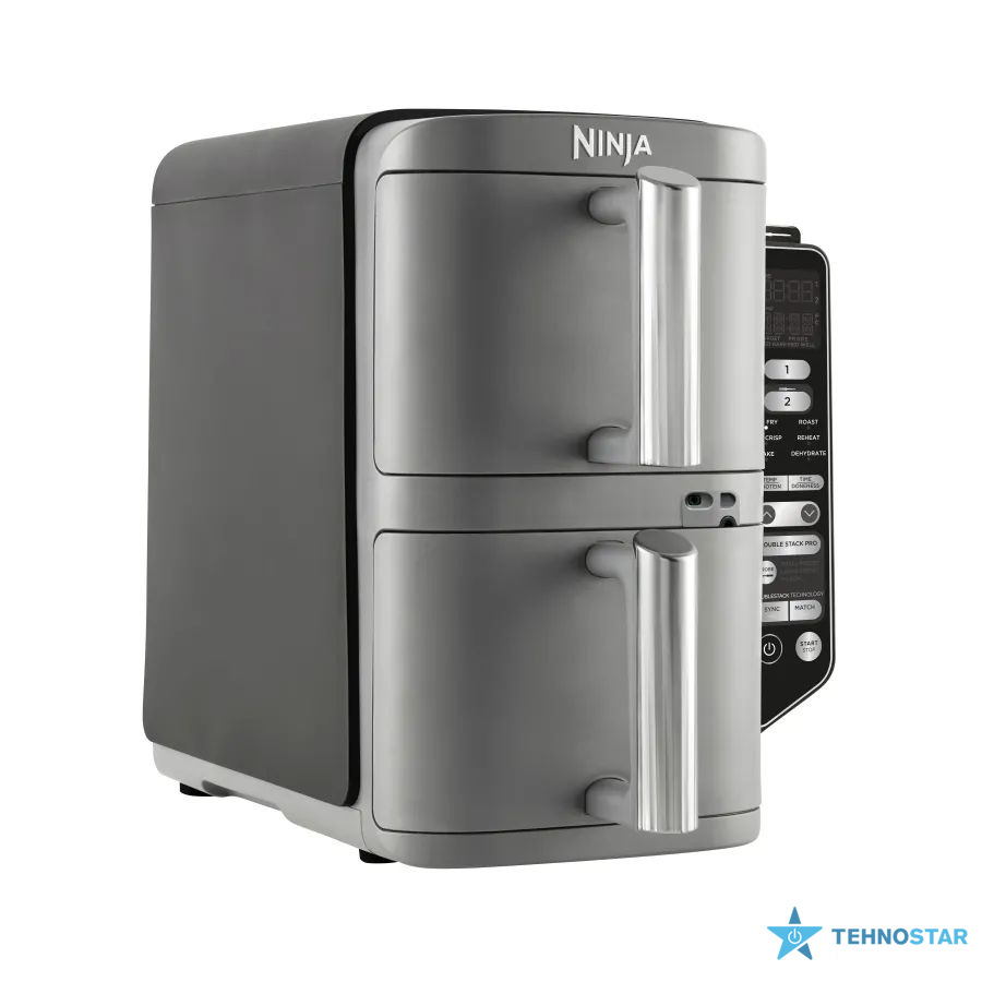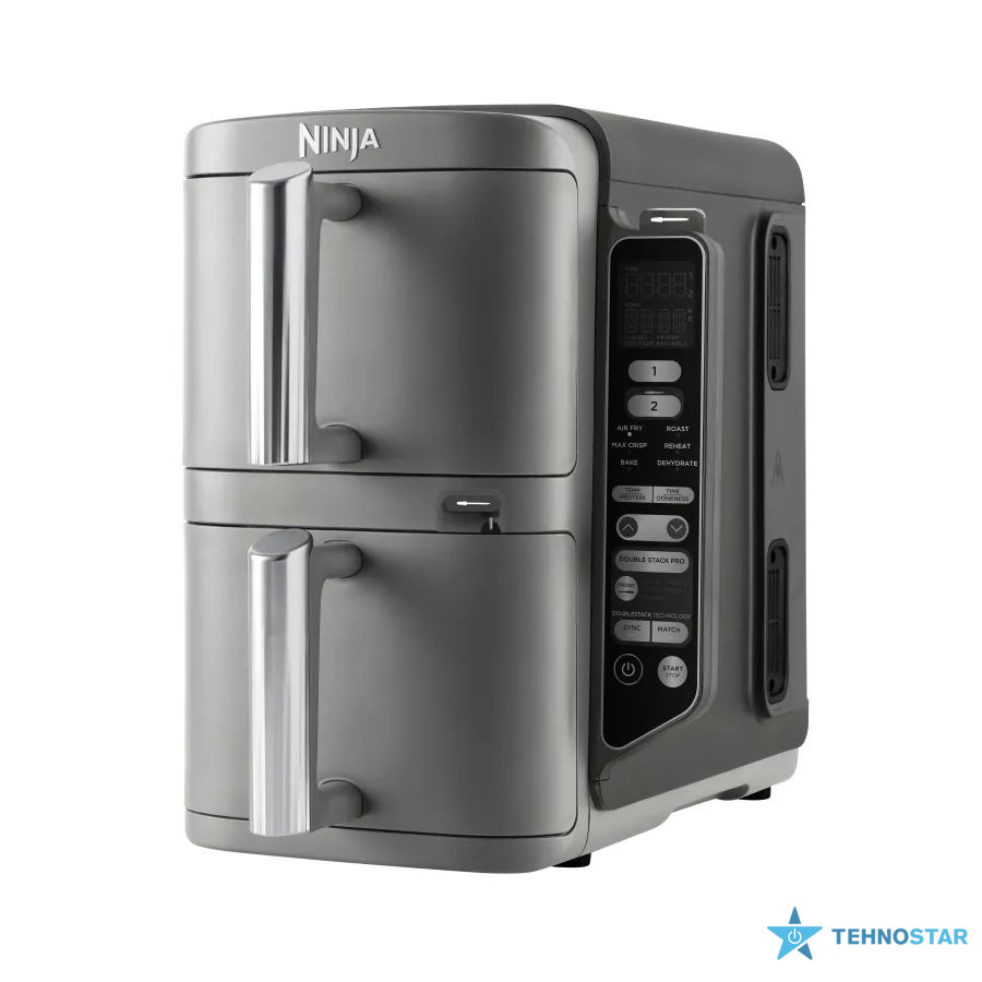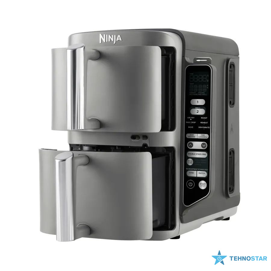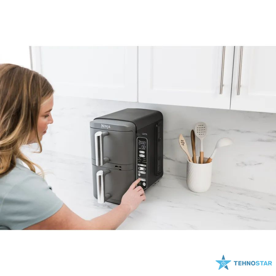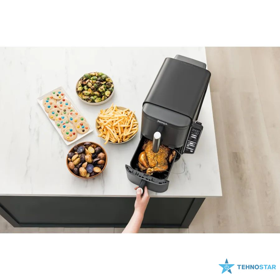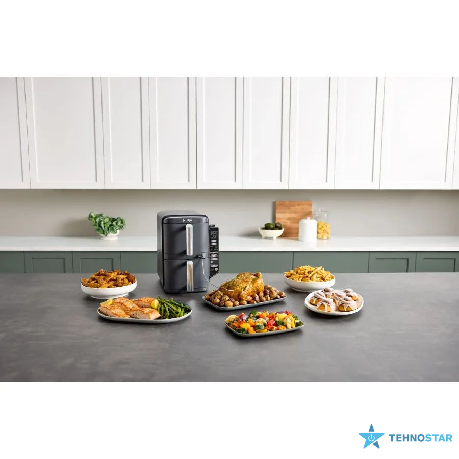 Ninja Double Stack XL пропонує 6 універсальних режимів приготування, що відкривають безмежні кулінарні можливості. Аерогриль ідеально підходить для соковитих стейків або картоплі фрі з мінімумом олії. Режим запікання допоможе створити ароматні пироги чи м’ясні рулети. Для створення снеків є функція дегідратації — чудовий вибір для приготування домашніх чипсів або сухофруктів. А функції смаження й розігрівання ідеальна для створення щоденного раціону. Приготуйте овочеве рагу або відновіть температуру вчорашньої вечері. Загальний об’єм кошиків становить 9,5 літрів, що дозволяє одночасно приготувати до 8 порцій або дві цілі курки.
