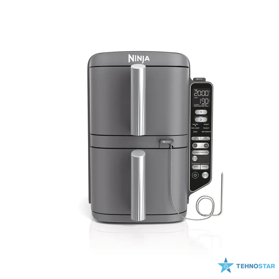 З Ninja Double Stack XL SL451EU ви отримуєте не лише неймовірну зручність, а й значне зменшення використання олії — до 75%! Завдяки технології Air Fry ви зможете насолоджуватись соковитими стейками, хрусткою картоплею фрі або навіть курячими крильцями без зайвого жиру, але з неймовірною текстурою. А завдяки спеціальним аксесуарам, таким як дві чаші, решітки з нержавіючої сталі та інтелектуальний термометр, ви легко можете налаштувати ідеальні параметри приготування. І найкраща новина: після приготування все можна швидко очистити в посудомийній машині й прибрати залишки жиру, спецій та липких забруднень. У комплекті також є книга рецептів, що відкриє перед вами безліч нових кулінарних можливостей!