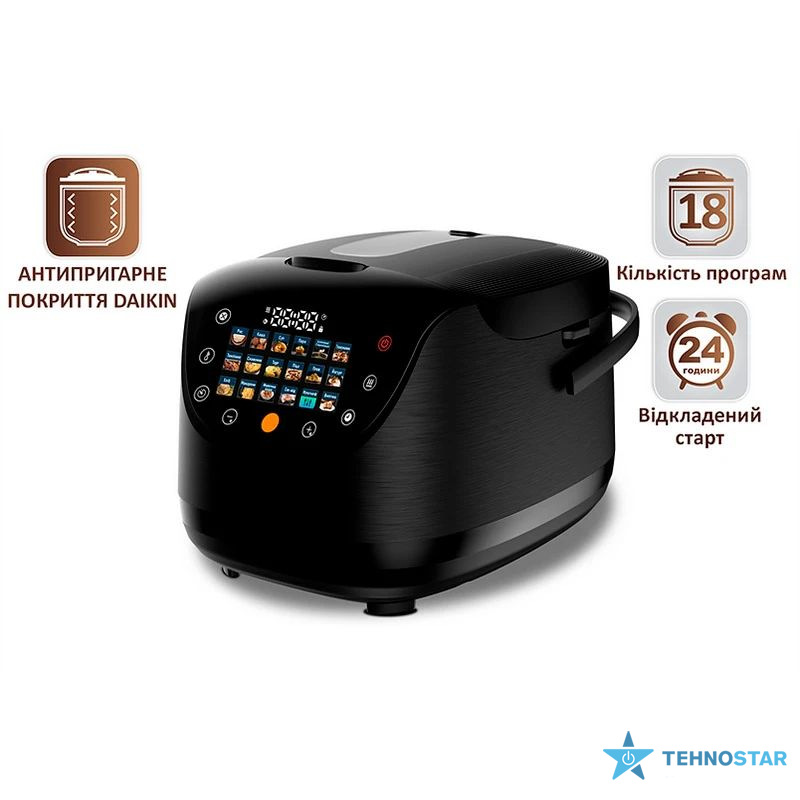 Ця мультиварка оснащена 18 програмами, включаючи суп/борщ/вуха, молочну кашу, кашу, плов, рис, пасту, випічку та йогурт. Завдяки антипригарному покриттю чаші, приготування страв стає простішим і швидшим, а догляд за пристроєм не вимагає багато часу.