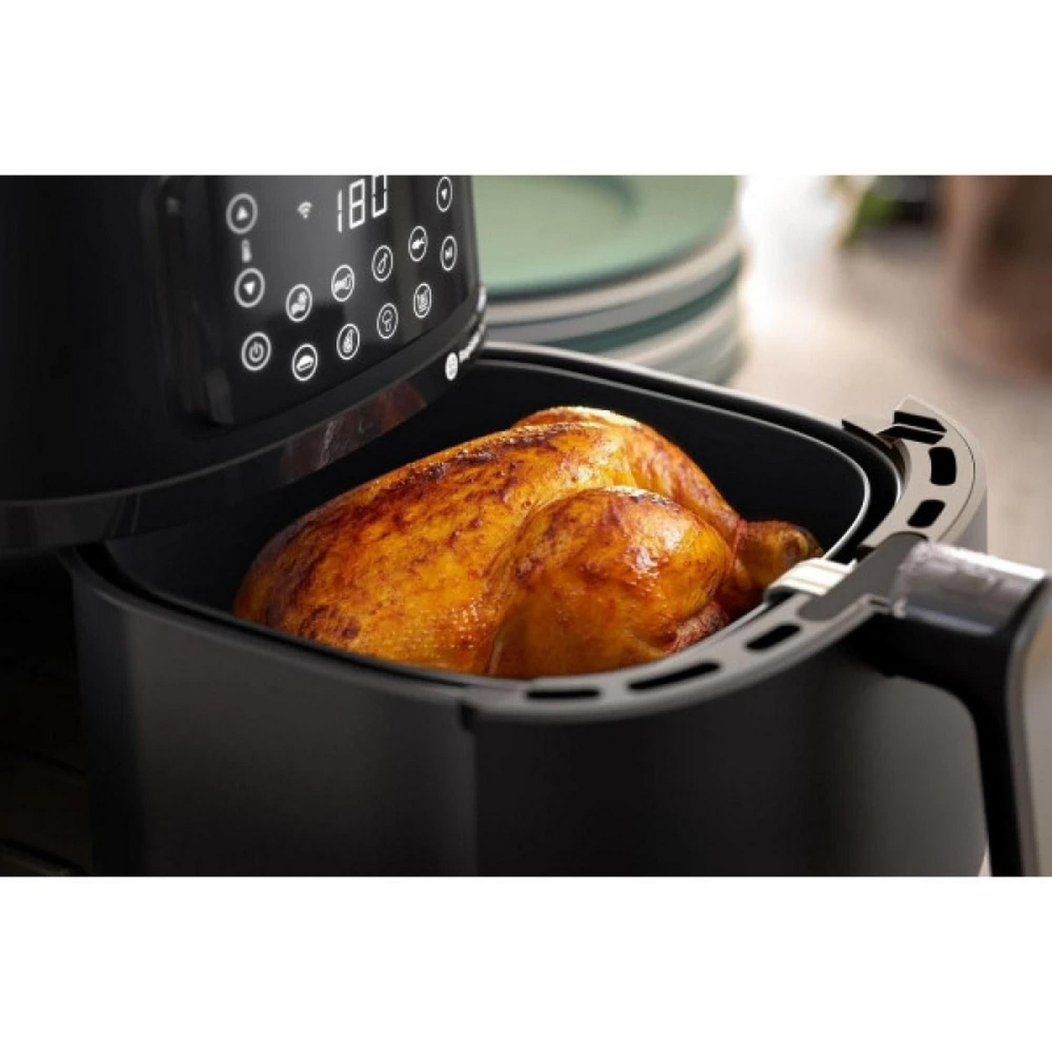 Philips Ovi Connected XXL поєднує в собі високу потужність та місткість, забезпечуючи якісне приготування без зайвого жиру. Антипригарне покриття чаші полегшує очищення та зберігає привабливий вигляд страв. Сенсорна панель керування доповнена зручним дисплеєм для інтуїтивного користування. Убудований таймер до 3 годин дозволяє готувати без постійного нагляду. Система автовимкнення додає безпеки під час роботи. Через мобільний застосунок можна контролювати процес готування та отримувати поради для нових рецептів.
