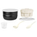 Комплектація мультиварки включає чашу, контейнер для приготування на пару, мірний стакан, столову ложку/черпак, плоску ложку, інструкцію, книгу рецептів та баночки для йогурту. Кришка забезпечує герметичність приготування, а довжина шнура в 1.2 метра додає зручності у використанні.