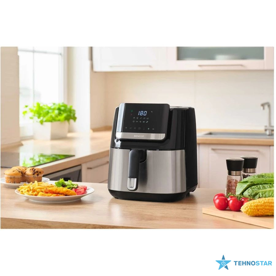 SENCOR Vita Fryer SFR6600SS — це потужна мультипіч-фритюрниця нового покоління з технологією безмасляного смаження, яка дозволяє готувати хрусткі страви з мінімальним вмістом жиру. Завдяки об’єму 6,5 літра та потужності 1600 Вт, пристрій забезпечує швидке приготування їжі для всієї родини — від хрусткої картоплі до м’яса чи овочів.