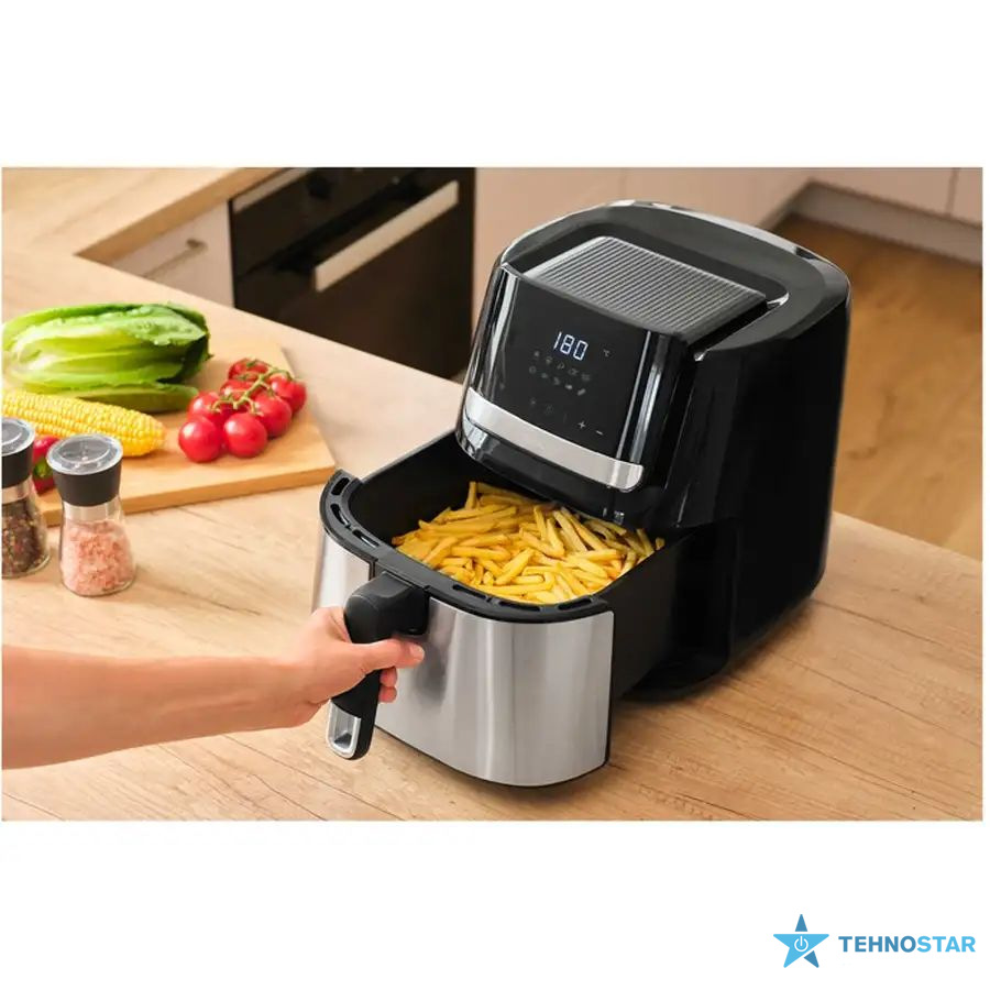 Модель оснащена світлодіодним дисплеєм і сенсорними датчиками управління, які забезпечують інтуїтивне та зручне користування. Вже через 3 хвилини після увімкнення пристрій готовий до роботи. Діапазон температур — від 80 до 200 °C, а таймер до 60 хвилин із сигналом — ідеальний для контролю процесу приготування.