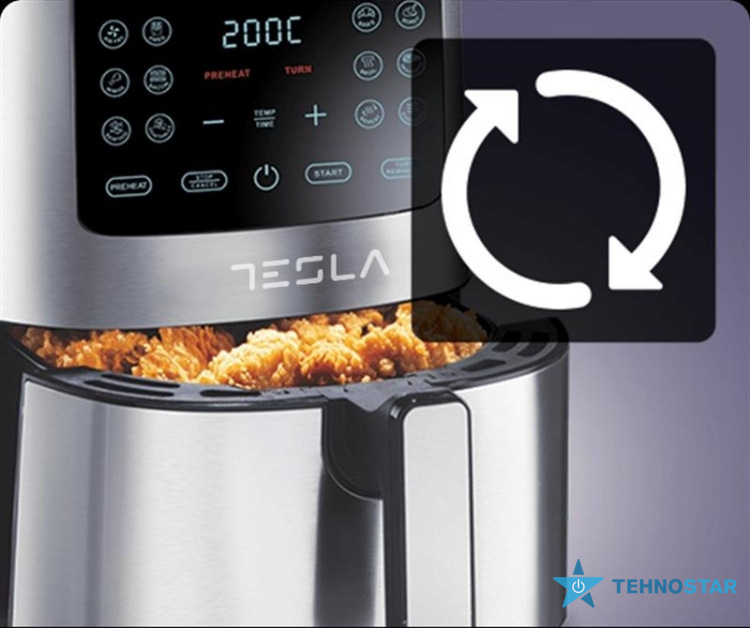 Сенсорна панель керування відкриває доступ до широкого діапазону температур — від 60 до 200°C. Встановлюйте час, обирайте одну з 12 вбудованих програм — і насолоджуйтесь результатом. Готувати з Tesla AF501BX легко навіть тим, хто ніколи не любив кухню.