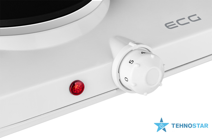 Плита оснащена двома конфорками: одна з діаметром 185 мм (1500 Вт), а інша — 155 мм (1000 Вт). Це дозволяє використовувати різний посуд, від великих каструль до менших сковорідок. Кожна конфорка має окремий термостат з плавним регулюванням, що дає можливість точно налаштувати температуру для різних видів приготування їжі.