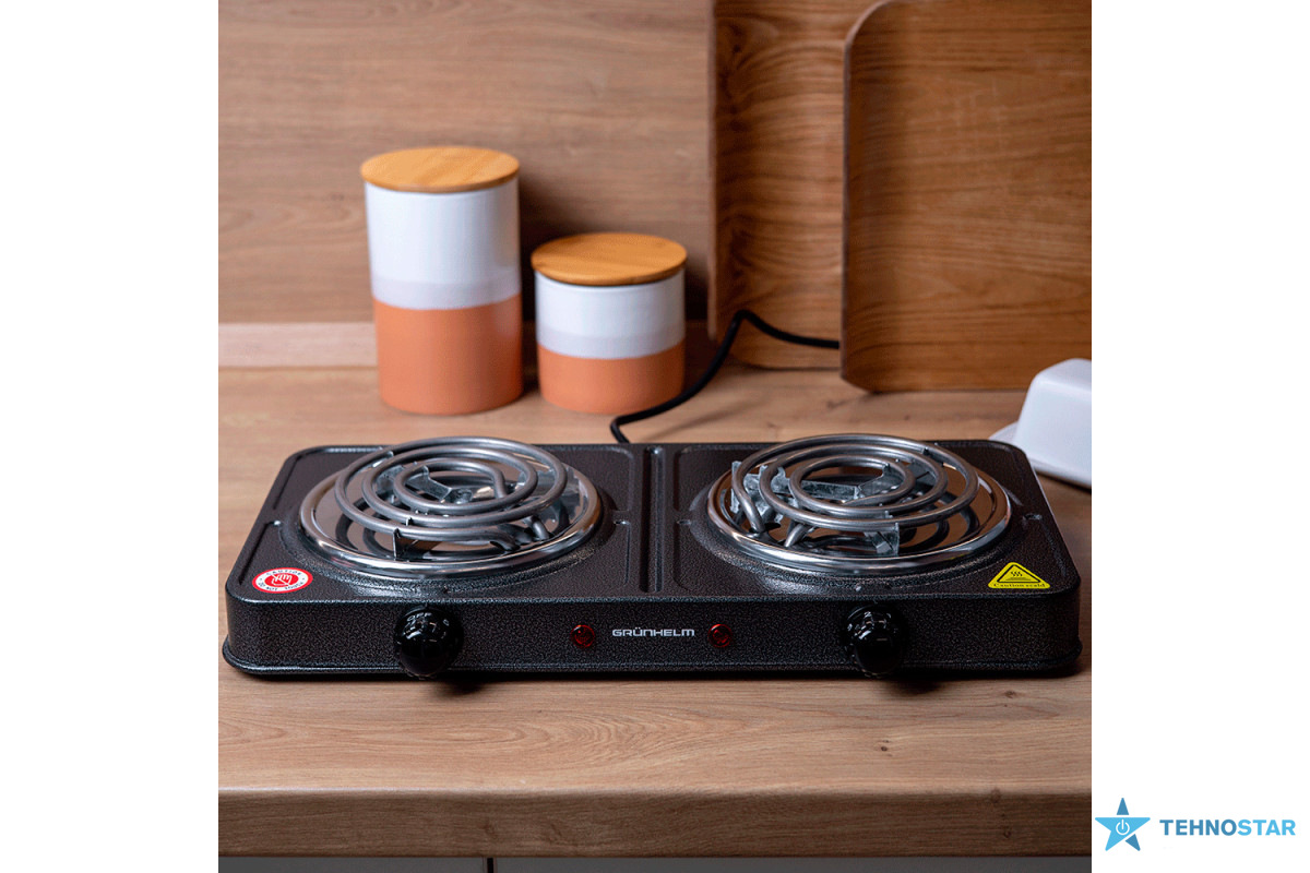Настільна електрична плита Grunhelm GHP-5613 поєднує в собі компактність та практичність, що робить її ідеальним рішенням для обмежених кухонних просторів, дач, офісів або студентських кімнат.