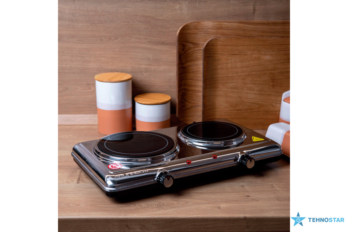Плита оснащена двома конфорками Hi-Light: одна діаметром 15,5 см, інша — 18 см, що дозволяє використовувати різноманітний посуд. Плавне регулювання потужності забезпечує точний контроль температури, а LED-індикація вказує на стан приладу. Вбудована захист від перегріву гарантує безпеку під час експлуатації.