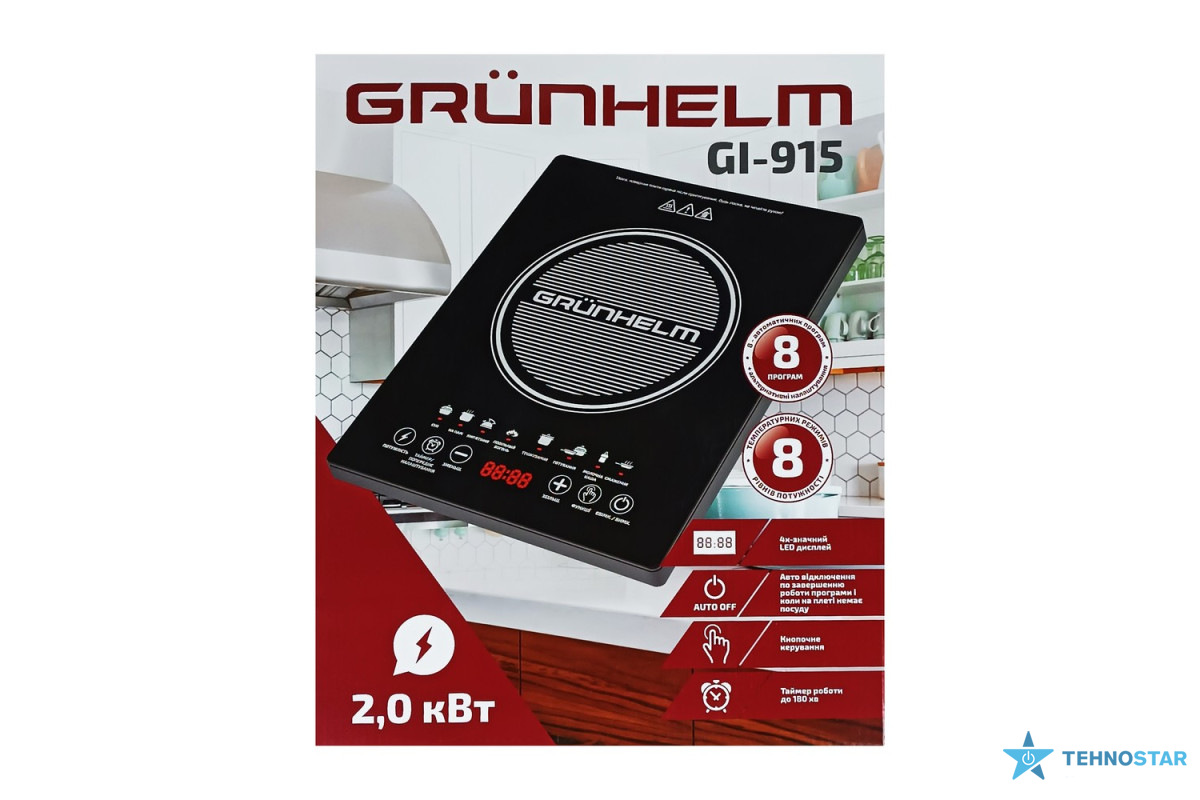 Grunhelm GI-915 чудово підійде, коли потрібно швидко щось приготувати, але немає бажання чи можливості користуватися великою плитою. Це практичний вибір для дачі, орендованої квартири або як резервний варіант на кухні.