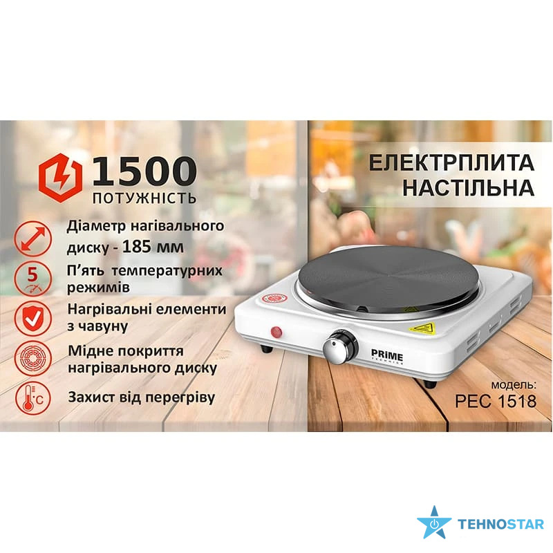 PRIME Technics PEC 1518 — це практичне та економічне рішення для тих, хто цінує простоту, ефективність та компактність на кухні.