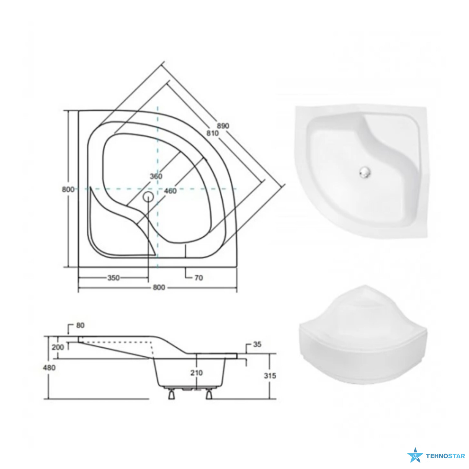 Конструкція призначена для глибокого піддону "BESCO OLIVER ІІ 80х80х21/31,5".
