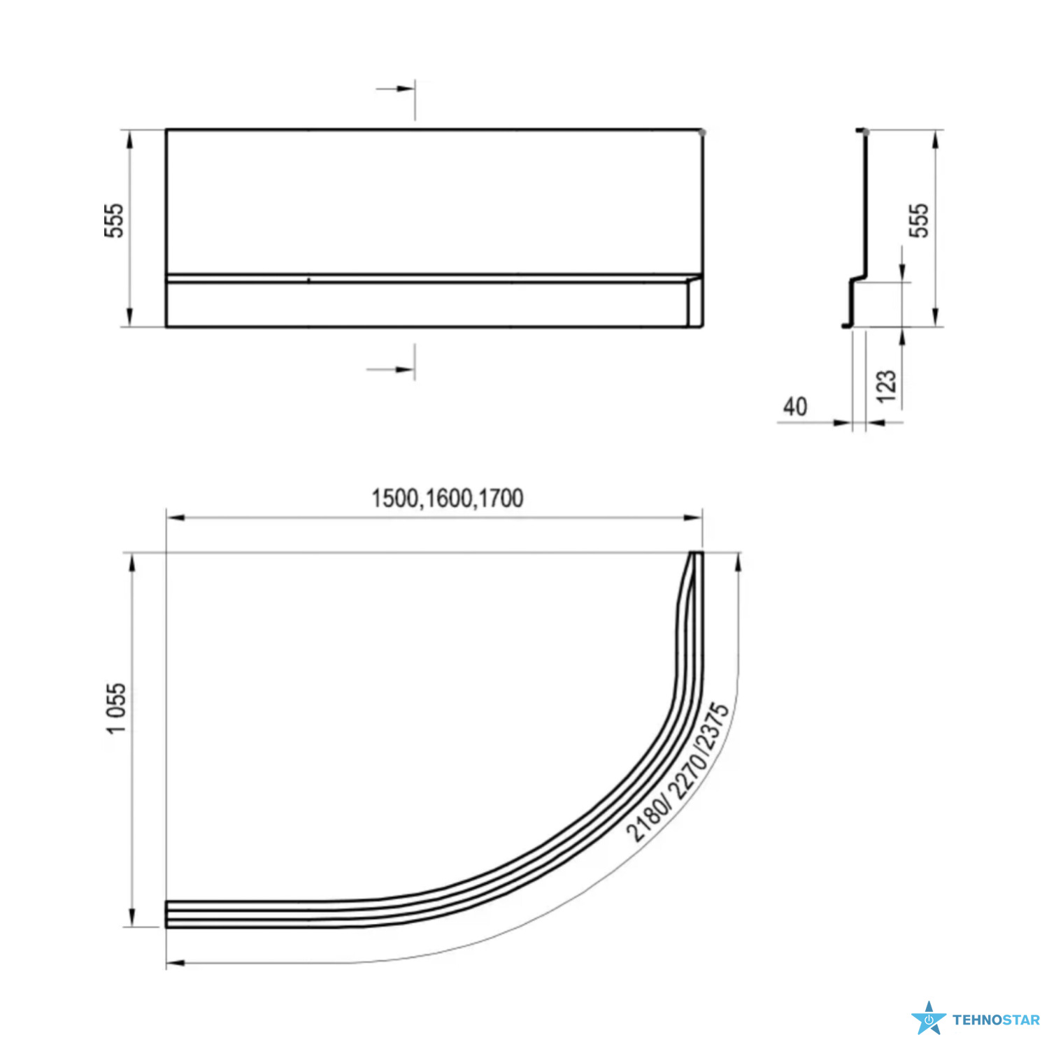 у розмірі: 2375 x 555 мм