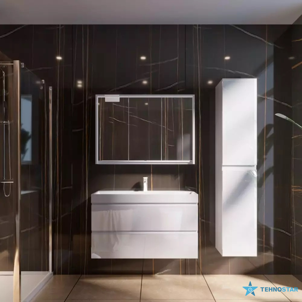 Завдяки підвісній конструкції, шафа не тільки заощаджує місце, а й полегшує прибирання у ванній кімнаті. Білий глянсовий колір надає меблям легкість і свіжість, роблячи її гармонійним елементом будь-якого сучасного інтер'єру.