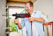 Є великі м’які поверхні для зручного утримання. Додаткова рукоятка перфоратора Einhell TE-RH 950 5F з ребрами для надійної фіксації. Для комфортної та зручної експлуатації є блокування безперервної роботи. Перфоратор оснащений міцним знімним патроном SDS-plus, плавно регульованим обмежувачем глибини свердління з цільного металу, а також додатковим свердлильним патроном для загвинчування та свердління. Перфоратор поставляється в пластиковому кейсі E-Box Basic для транспортування і зберігання.