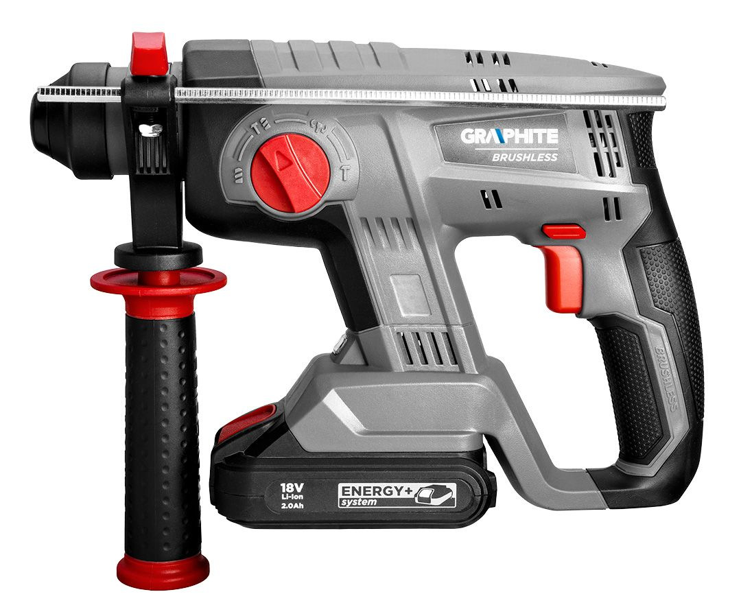 Акумуляторний ударний перфоратор Energy+ 18В GRAPHITE 58G027 - легкий і компактний акумуляторний електроінструмент з патроном SDS Plus, що дозволяє свердлити з ударом і без удару. Відмінний інструмент для легких ремонтно-будівельних робіт. Конструкція перфоратора характеризується компактною формою, схожою на дриль-шуруповерт, та малою вагою.
