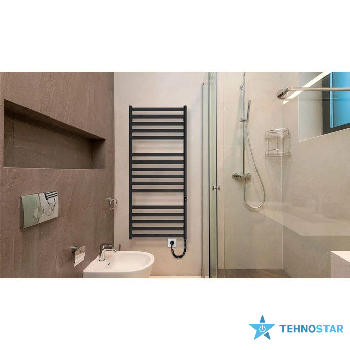 Корпус сушарки виготовлений зі сталі, що гарантує довговічність та надійність виробу. Чорний колір надає пристрою елегантності і робить його стильним акцентом у вашій ванній кімнаті. Габарити сушарки складають 1170 х 530 х 80 мм, що робить її компактною та зручною у використанні навіть у невеликих приміщеннях.