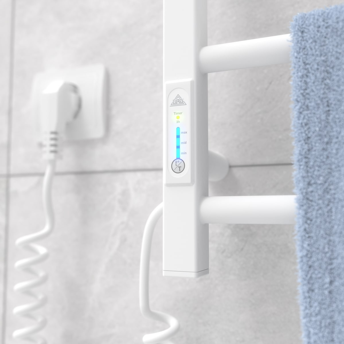 Особливості: керує нагріванням електрорушникосушки мікропроцесорний термоконтролер (кнопкове управління). Для початку роботи необхідно задати температуру сушки для рушників. Термодатчик контролює температуру поверхні рушникосушарки, що виключає його перегрів. Серед переваг регулятора - збереження обраного режиму роботи (при відключенні робота відновиться у запрограмованому користувачем режимі), наявність таймера відключення (3h) та колірної індикації роботи!